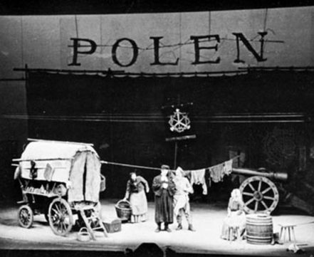 Many of Brecht’s most renown work are examples of Epic theatre, which later in his life he rebranded as dialectical theatre. Epic techniques defined the characters of works that thematize the nature of capitalism like Saint Joan of the Stockyards (written 1929-1931) or The Good Person of Szechwan (written 1938-1941), depicted revolutionary socialism like in The Mother (1932), or explored historical narratives like in Mother Courage and Life of Galileo. Brecht employed a range of strategies to establish this critical distance, many of which we now label as “breeches of the fourth wall” or interruption of the make-believe conventions of drama. The aesthetic strategies of Epic theatre included keeping the curtain half open so that spectators could see actors preparing the fictional scenes; using signs that summarised the action before it took place in order to make spectators focus on how things happened rather than on what happened; making actors speak in the third person to avoid for them being identified with their characters.